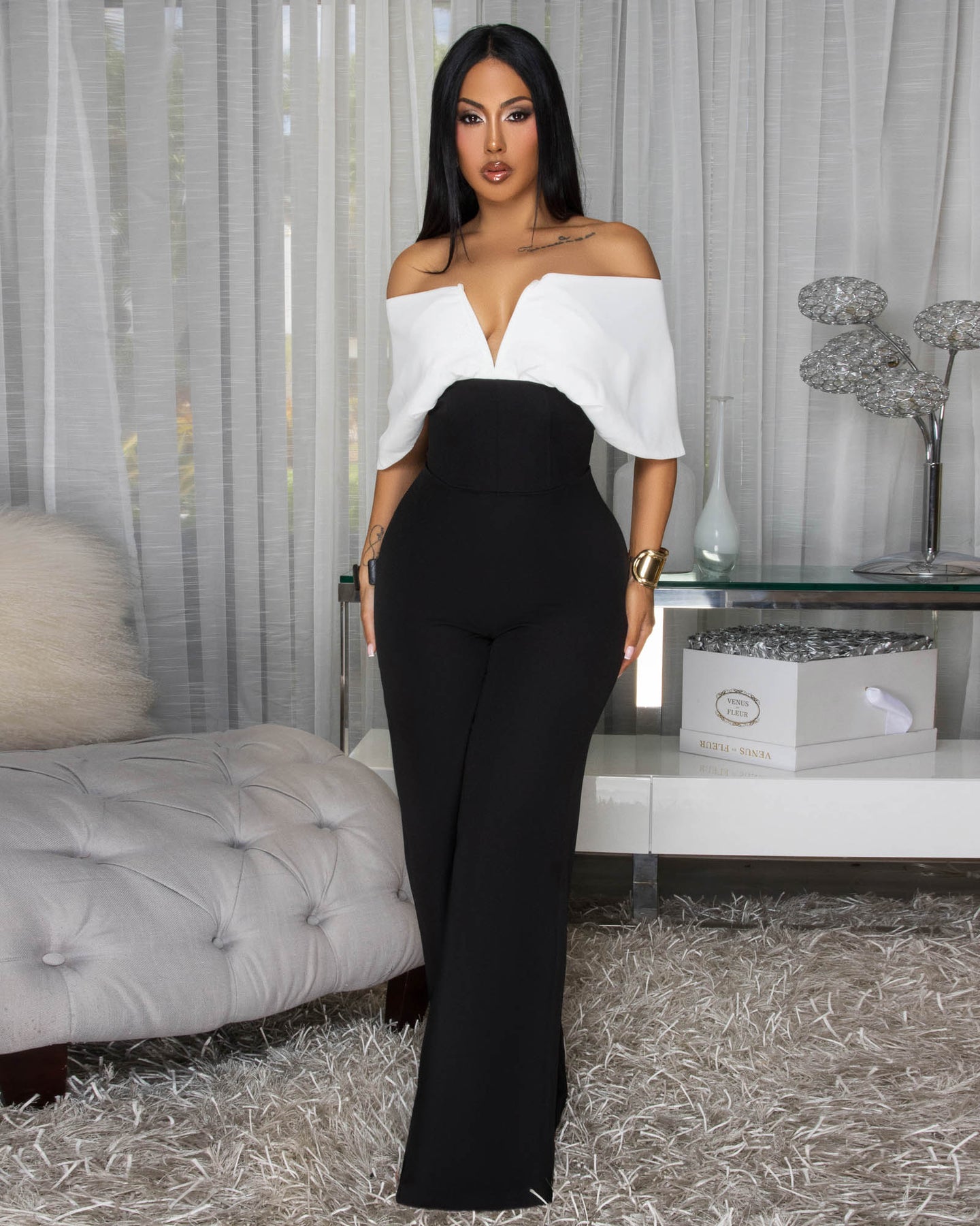 Eliselle Off-White Black Off-The-Shoulder Jumpsuit