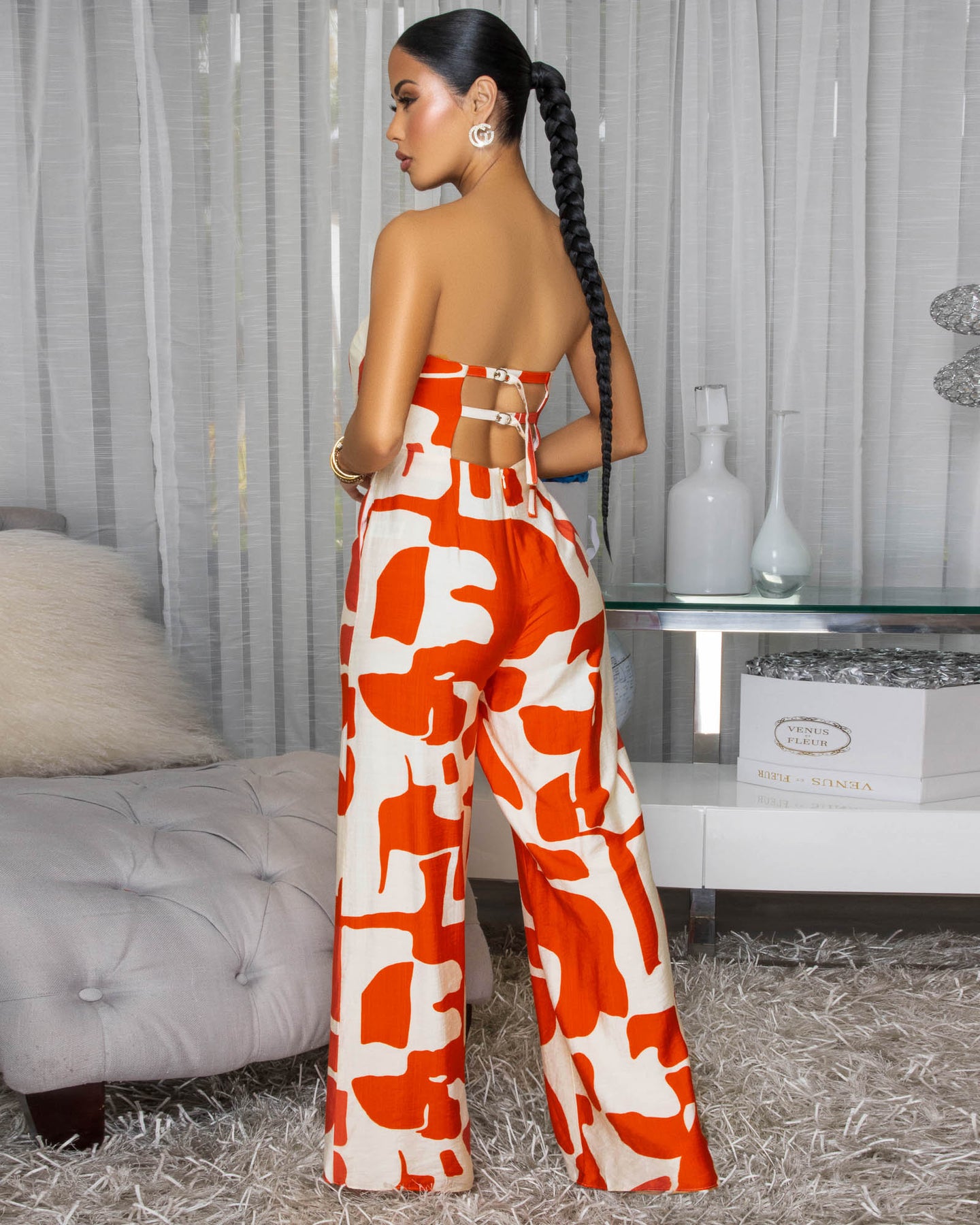 Jonna Tomatoe Red Cream Print Jumpsuit