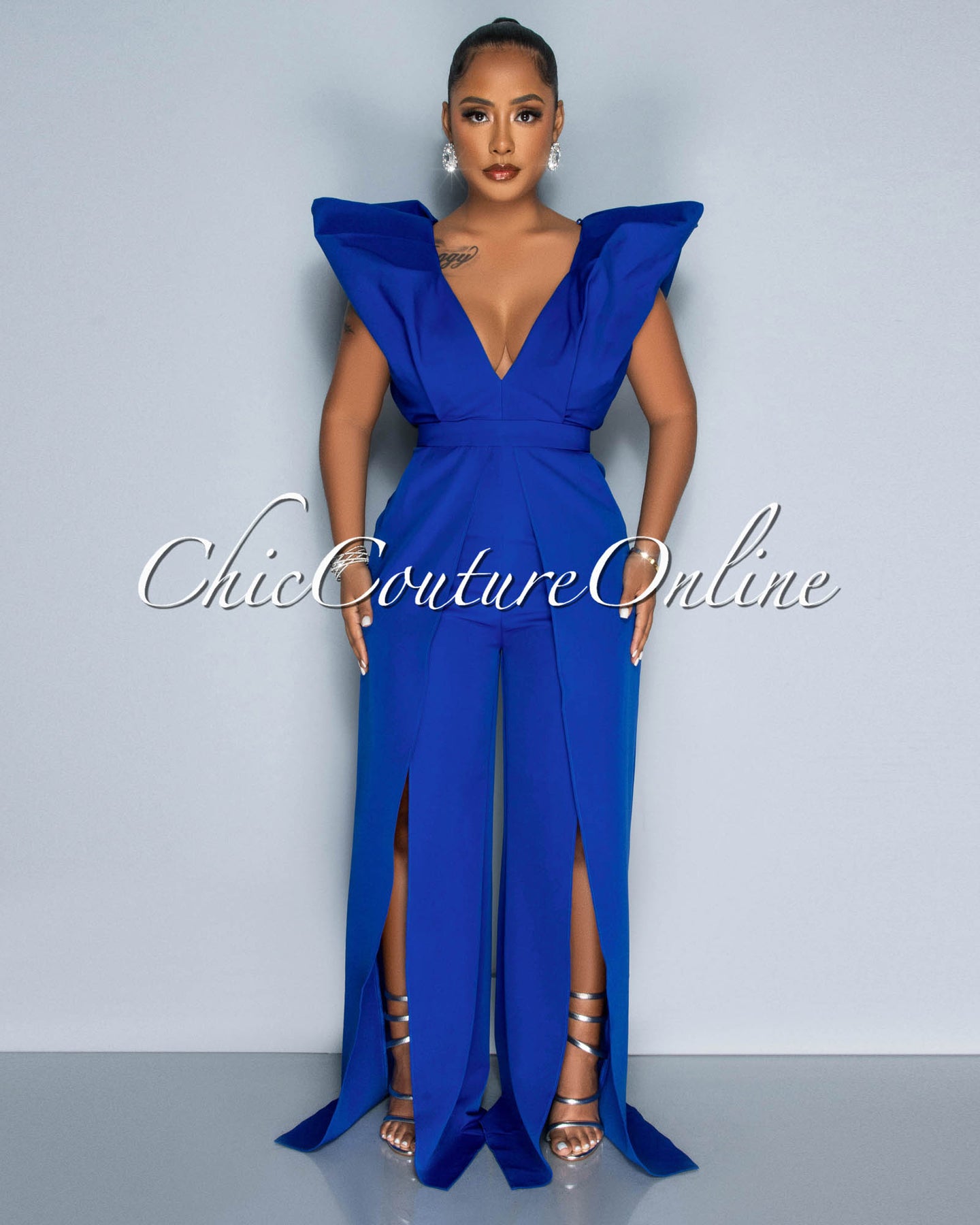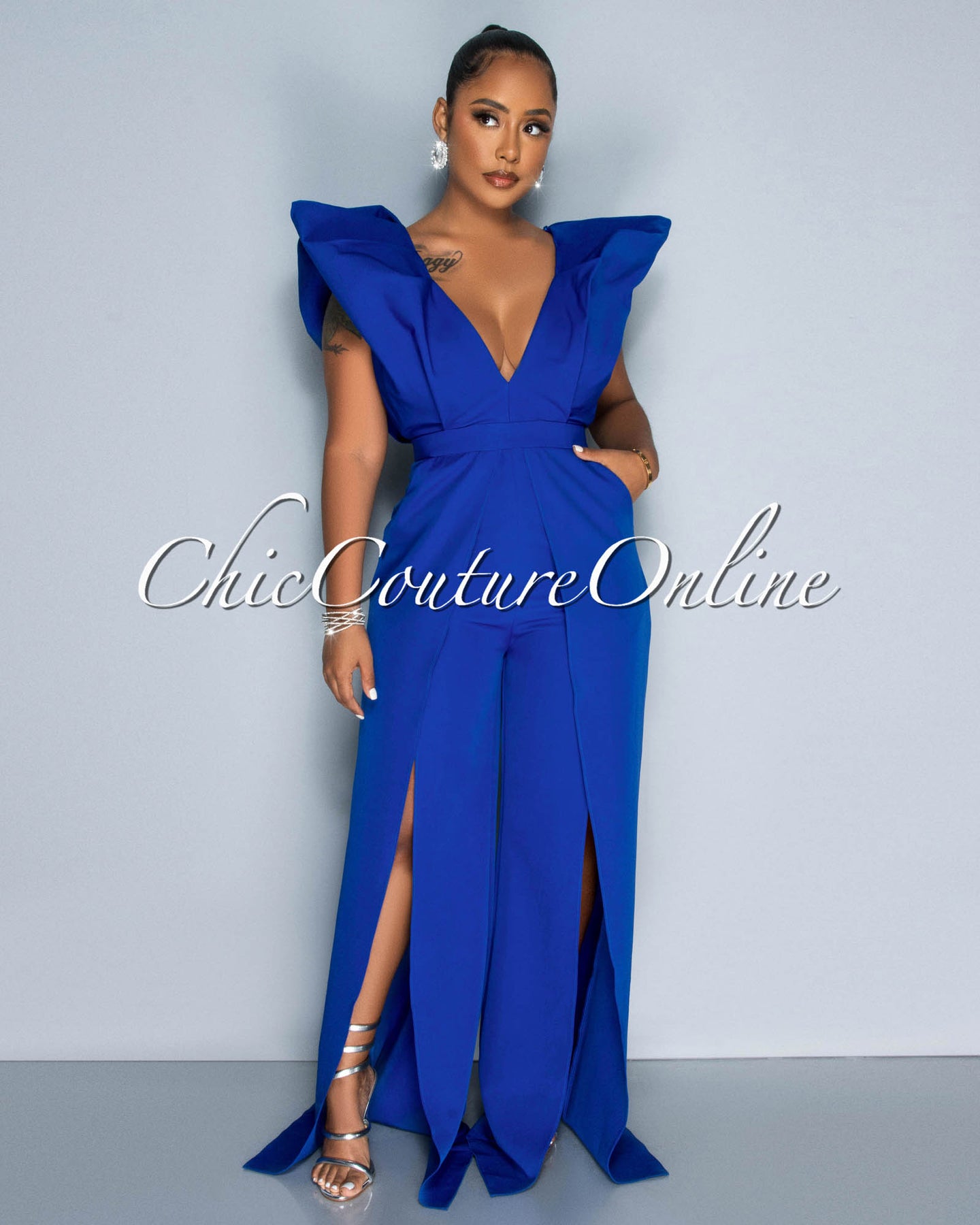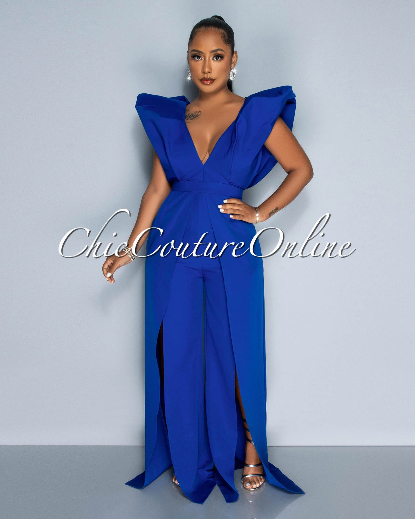 Vivien Royal Blue Statement Bubble Sleeves Jumpsuit