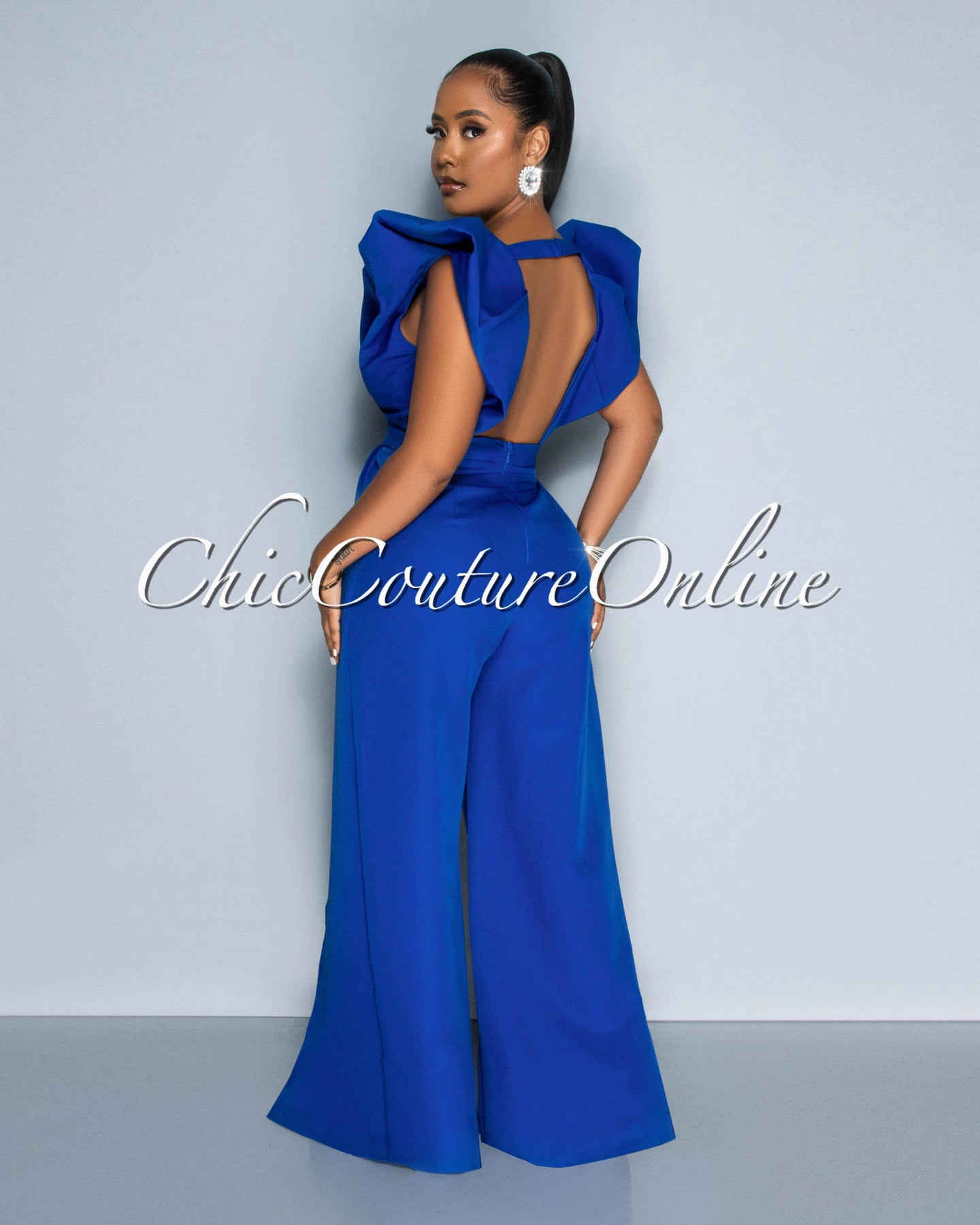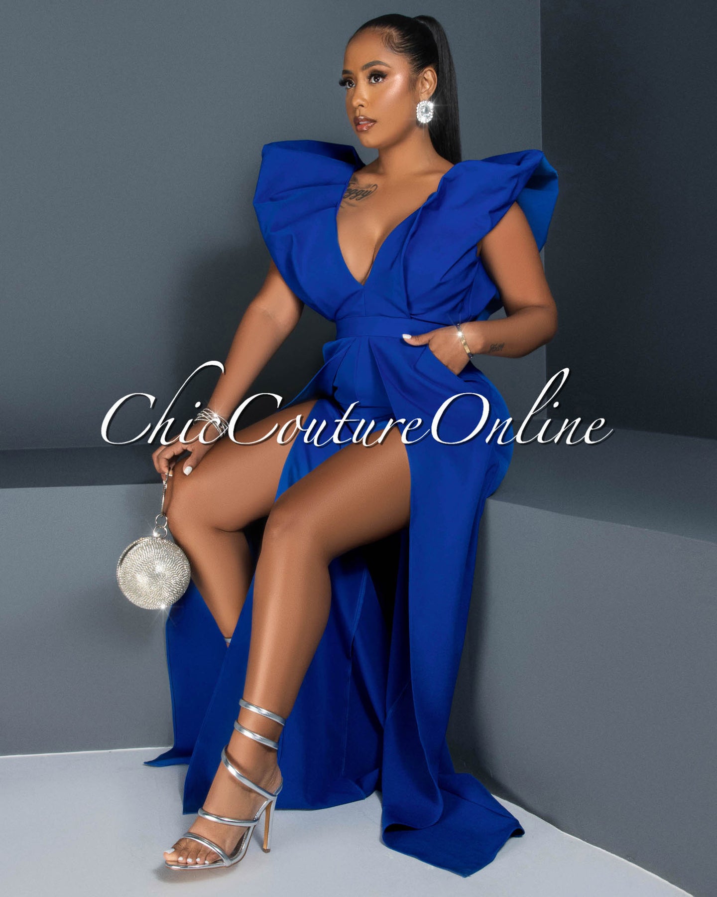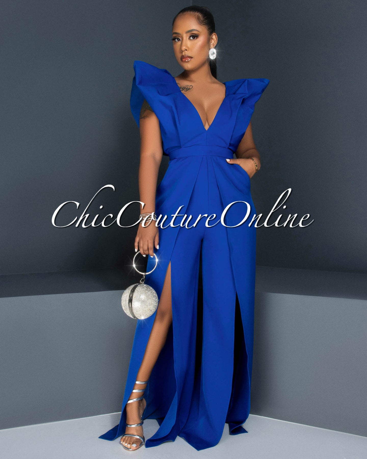 Vivien Royal Blue Statement Bubble Sleeves Jumpsuit